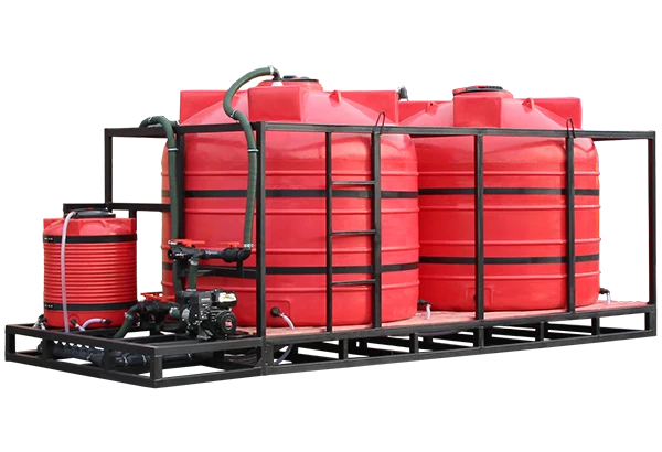 Растворный узел 10'000 литров с цилиндрическими химстойкими ёмкостями из категории Растворные узлы для производство КАС, ёмкости с мотопомпами в Тамбове.