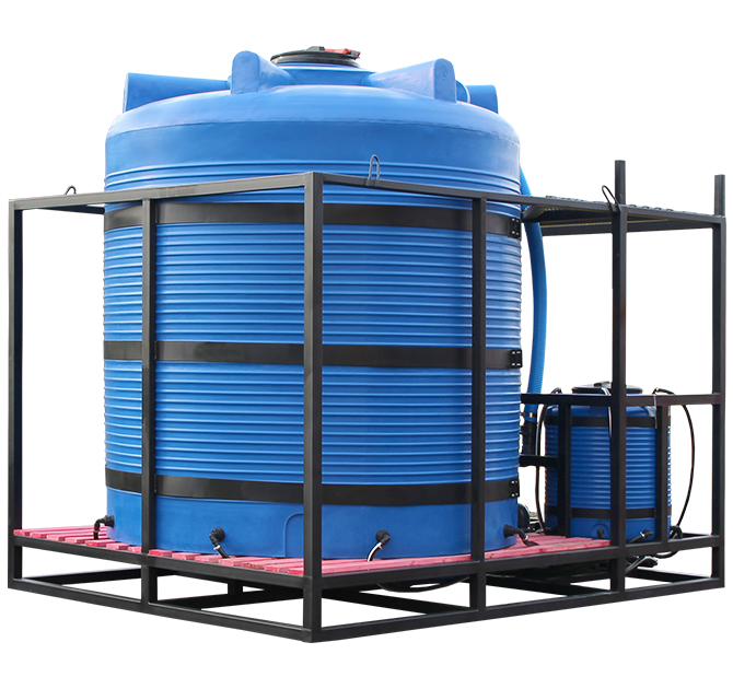 Стационарный растворный узел 10 кубм с миксером 300 л и пластиковой химстойкой мотопомпой из категории Растворные узлы для производство КАС, ёмкости с мотопомпами в Тамбове.