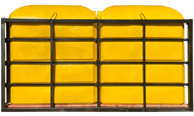 Новая модель транспортировочной кассеты для установки двух вертикальных прямоугольных бочек на 5000 литров. Конструкция имеет деревянный настил и места крепления насосов, шлангов и запорной фурнитуры, а так же лестницу и съемную площадку для легкого доступа к заливной горловине – готовое решения для создания растворных узлов и специализированной сельскохозяйственной и коммунальной техники.