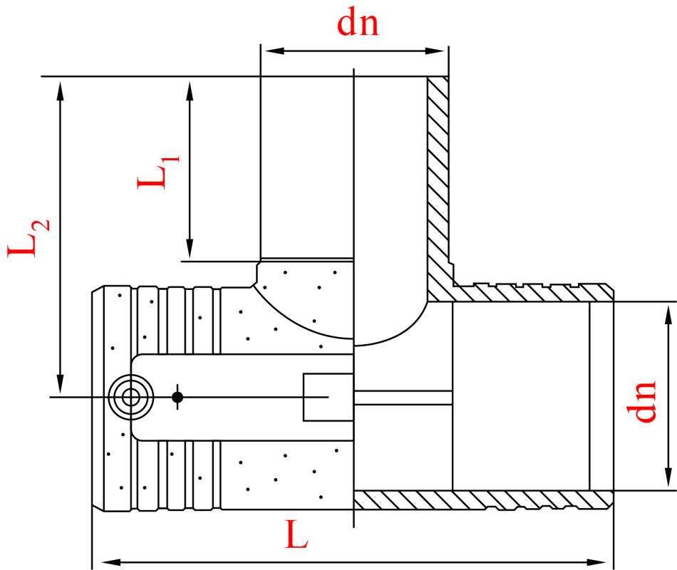 Пример условного обозначения: Тройник электросварной равнопроходной DN20 | L 117 | L₁ 41| L₂ 64
