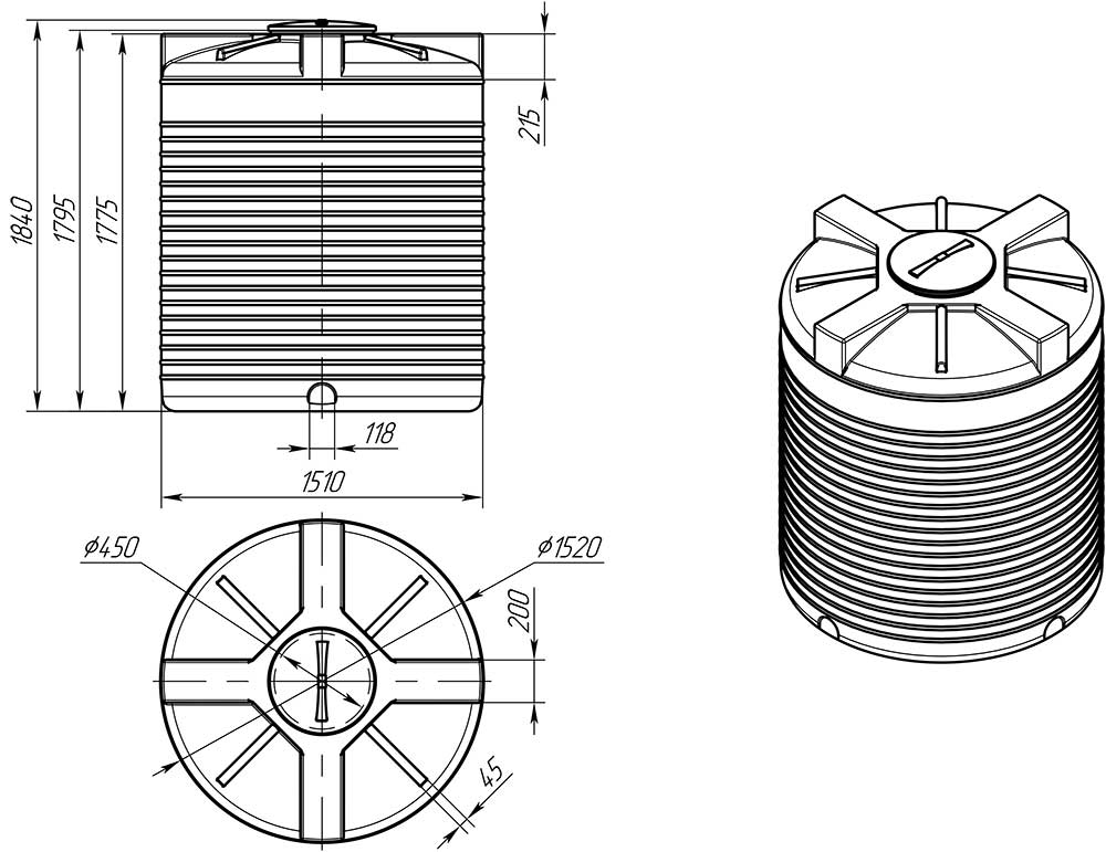 Накопительный бак с возможностью заглубления вертикальной цилиндрической формы – используется на промышленных и сельскохозяйственных предприятиях, базах отдыха, гостиницах, водных объектах, в коммунальной сфере. Надежные накопительные баки из пластика лучше металлических, так как не ржавеют, не впитывают и не выделяют в воду никакие соединения и запахи, легкие и простые в установке и эксплуатации, срок службы таких баков – более 50 лет!