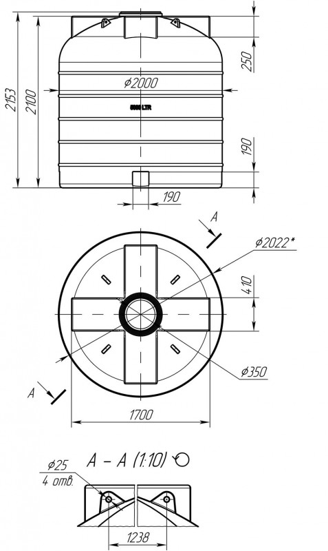 Большая цилиндрическая пластиковая емкость – имеет 2 варианта исполнения – для хранения больших объемов воды (данный вариант) и для растворов КАС, агрохимии, удобрений, ЖКУ и прочих жидкостей.